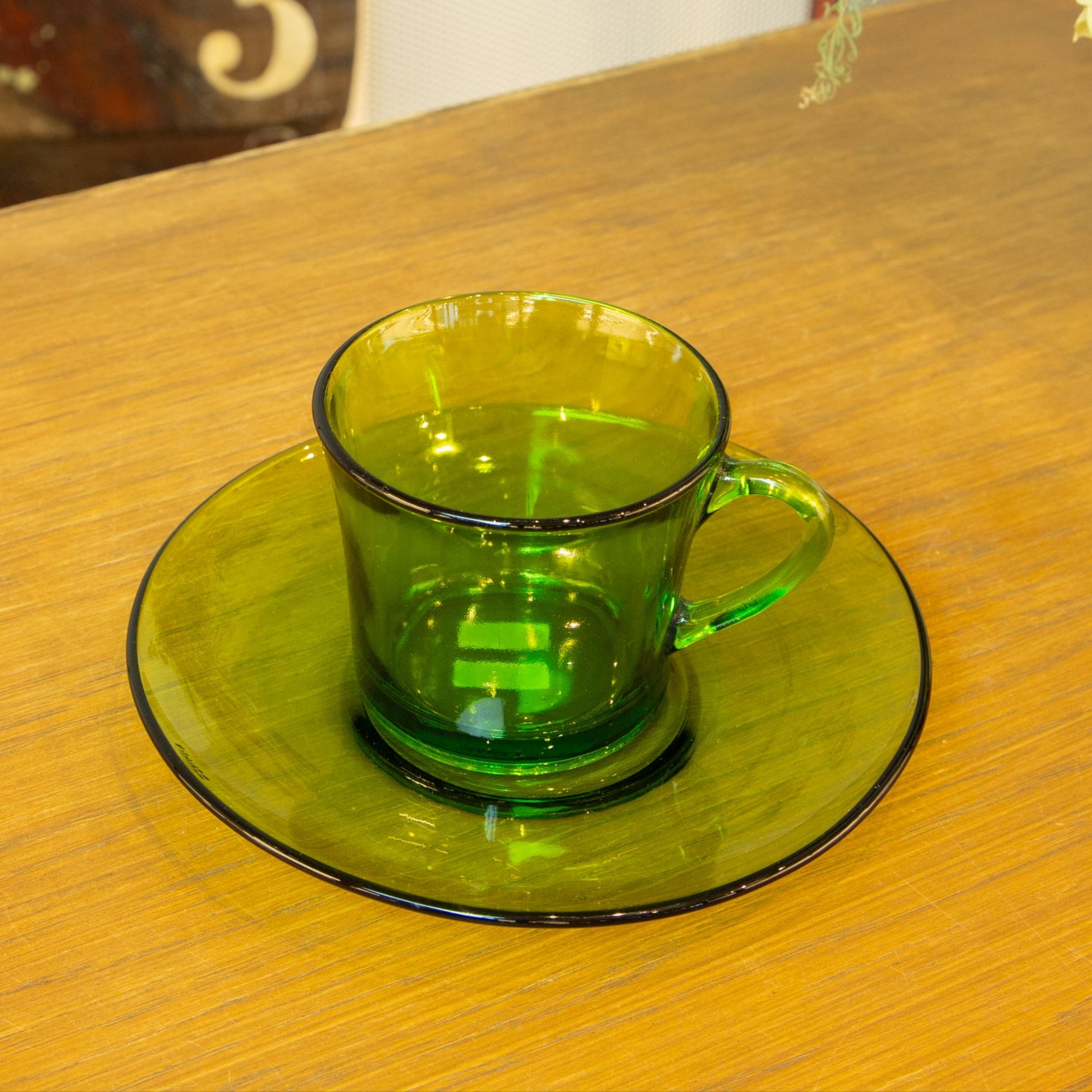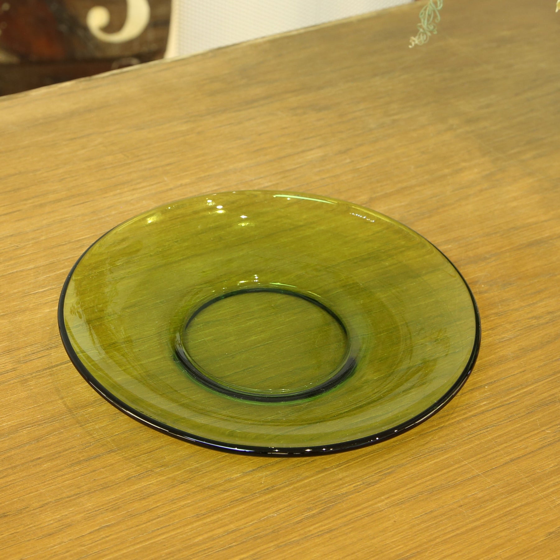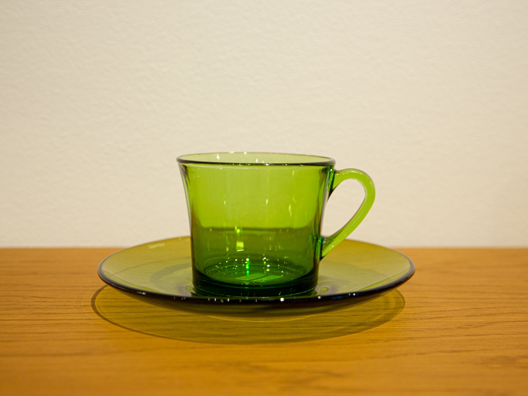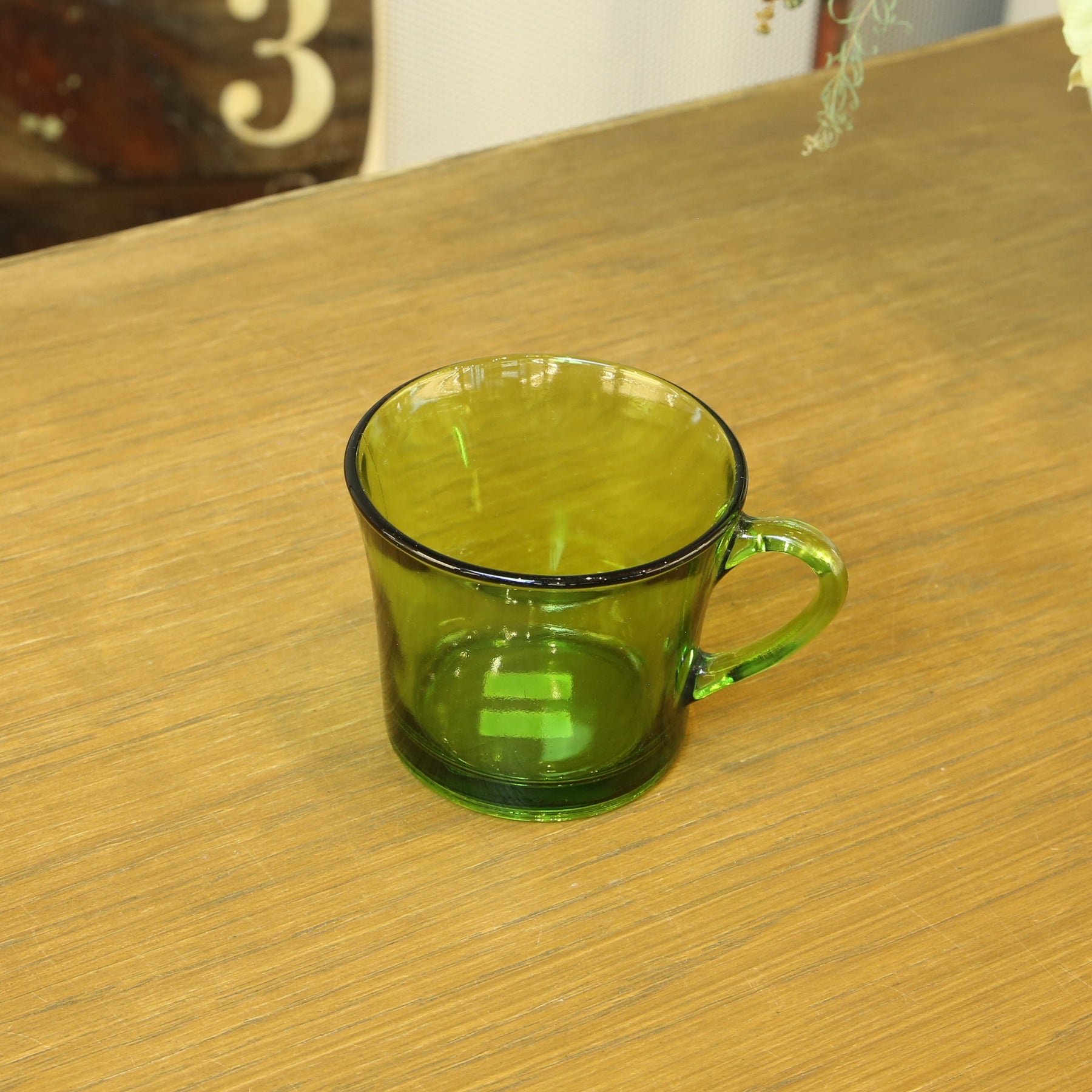 鮮やかな緑色のガラスが印象的で、厚みのあるフォルムに存在感があります。