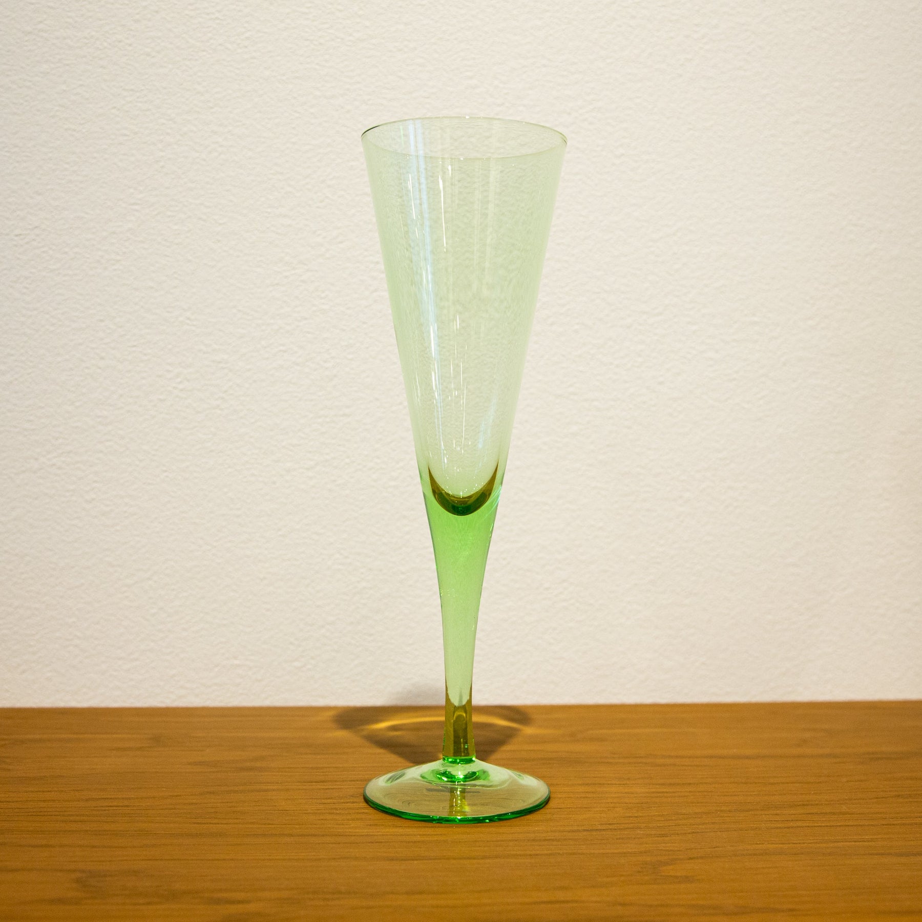 鮮やかなグリーンが印象的な レトロワイングラス。 すらっとした細身のフォルムが上品で、食卓に爽やかさを添えます。 レトロ好きにおすすめの一品です。